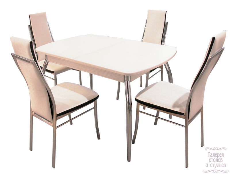 Стол «Портофино-1» цена 12740 руб. Размер столешницы, мм: 700×1100(+320). Материал: ЛДСП, стекло, хром. Стул «Комфорт» цена 2 900 руб. Материал: кожзам, хром. Цены на портале могут отличаться от действующих. Точную стоимость мебели уточняйте в салоне у продавцов-консультантов.