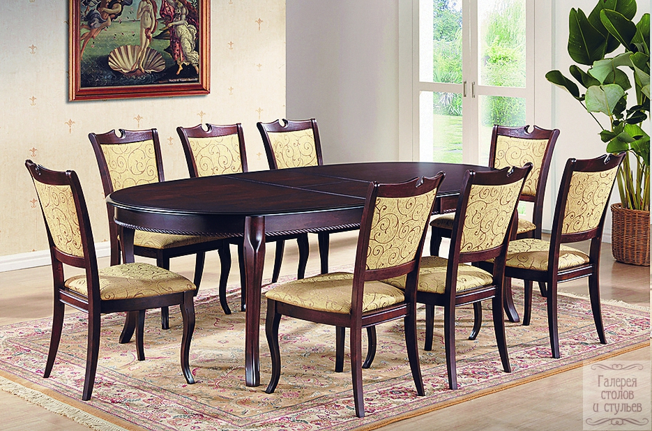 Стол «Royal» Размеры, мм: 1200*1960(+440) Материал: массив Цвет: венге Цена 23 700 руб. Стул «Royal» Цена 3 200 руб.