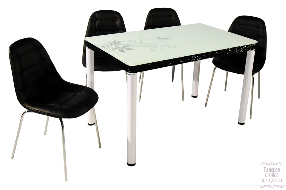 Cтол В – 2012 производство Китай, столешница каленое стекло, каркас и ноги хром Цвет: крем, черный, белый Размеры Длина 120см Высота 75см Ширина 70см Толщина стекла 10 мм Цена 9 800 руб. Стул F 12 Производство Китай, каркас металлический хромированный. Сиденья мягкие из кож. заменителя. Варианты цветов на выбор Цена 2 300 руб.