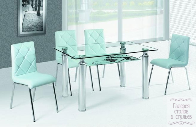 Cтол В – 86 производство Китай, столешница каленое стекло, каркас и ноги хром Размеры Длина 130см Высота 75см Ширина 80см Толщина стекла 10 мм Цена 9 200 руб. Стул F 201-2 Производство Китай, каркас металлический хромированный. Сиденья мягкие из кож. заменителя. Варианты цветов на выбор Цена 2 650 руб.