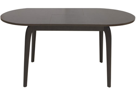 Размерный ряд этих столов позволяет использовать их как для малогабаритных, так и для просторных помещений. Стол снабжен вставкой, с механизмом «бабочка», хранящейся внутри стола. Подстолье изогнутое из массива дерева.